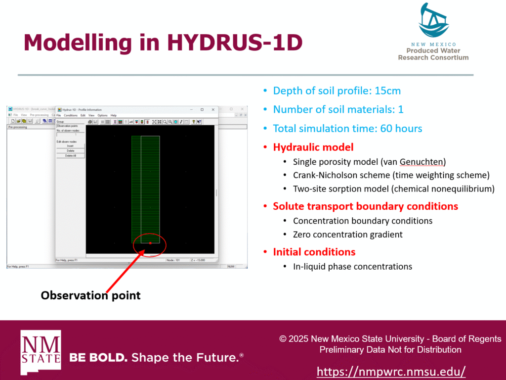 - 1D fate and transport modeling of treated produced water in New Mexico using the open-source version of HYDRUS-1D
