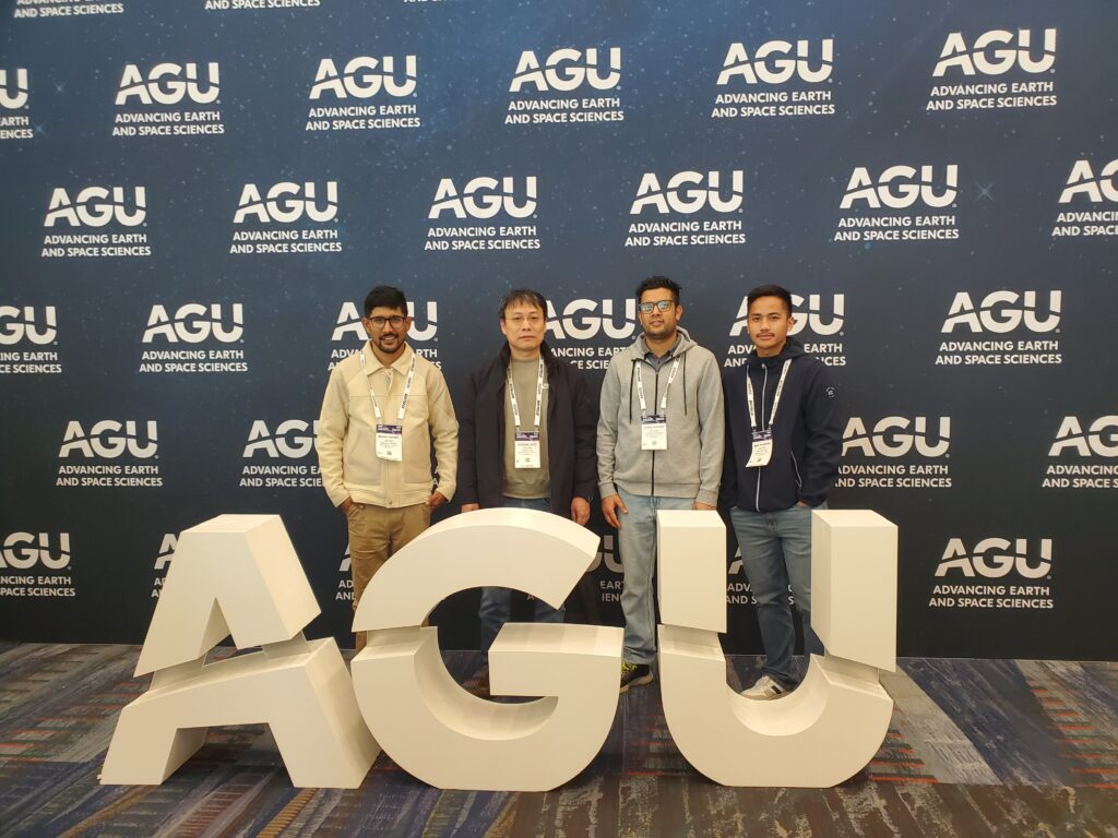 Ujjwal Marasini (PhD student), Madan Pokhrel (PhD student), Hari Shreesh (MS student), and I presented our projects at AGU25.